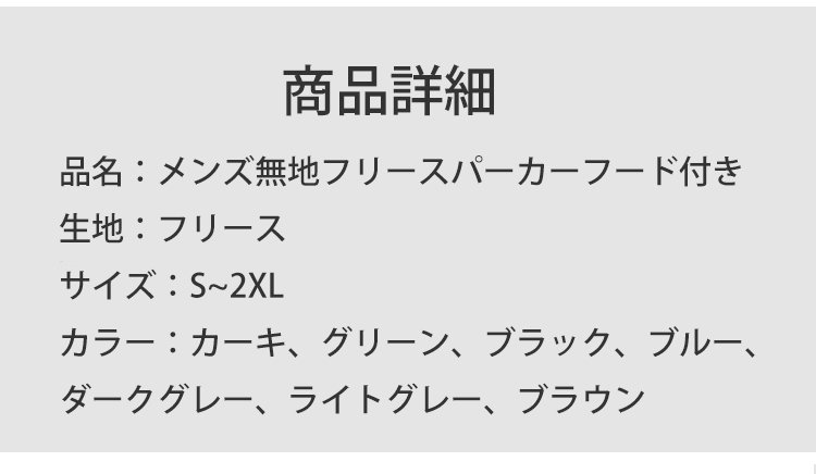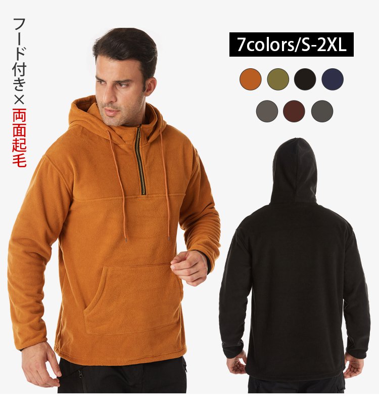 メンズ無地フリースパーカー